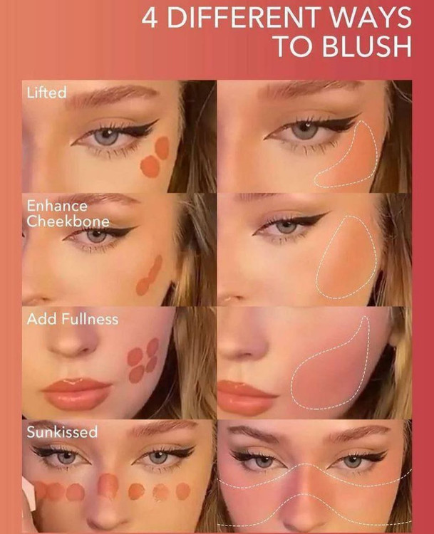 مقداری رژگونه را کف دست ریخته و با سر انگشت یا براش رژگونه آنرا به سمت بیرونی استخوان گونه کشیده و محو کنید. برای طبیعی تر شدن میکاپ میتوان مقداری از رژگونه هدی موجی را به همین روش بر روی بینی خود را کانتور کنید.